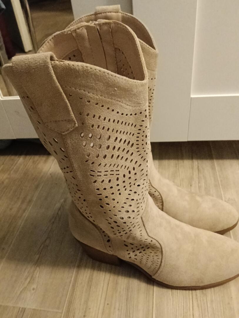 Sprzedam buty kowbojki zamszowe rozmiar 39 raz założone okazały się za duże nie trafiony zakup