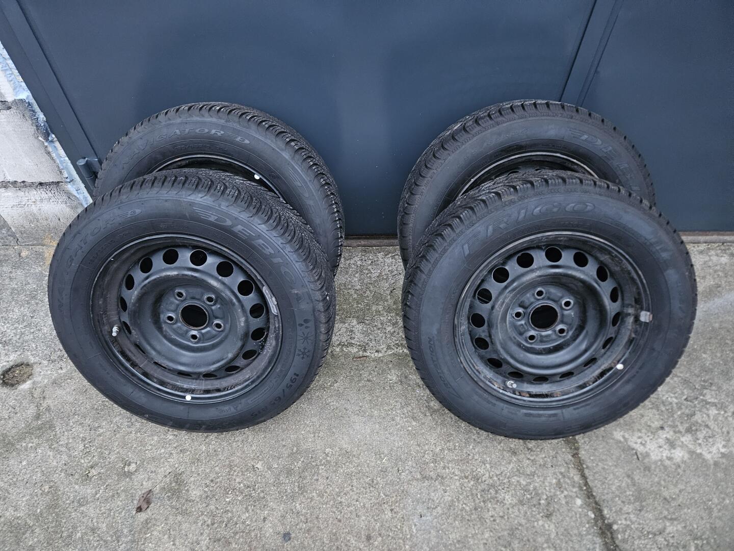 Sprzedam komplet kół 15" do toyoty (rozstaw 5×114, 3). 4x felgi stalowe, 4x opony 195/65 R15 (dwie dębica navigator data 5023, dwie dębica frigo2 data 4622), 4x czujniki ciśnienia, 3x oryginalne kołpaki toyota.