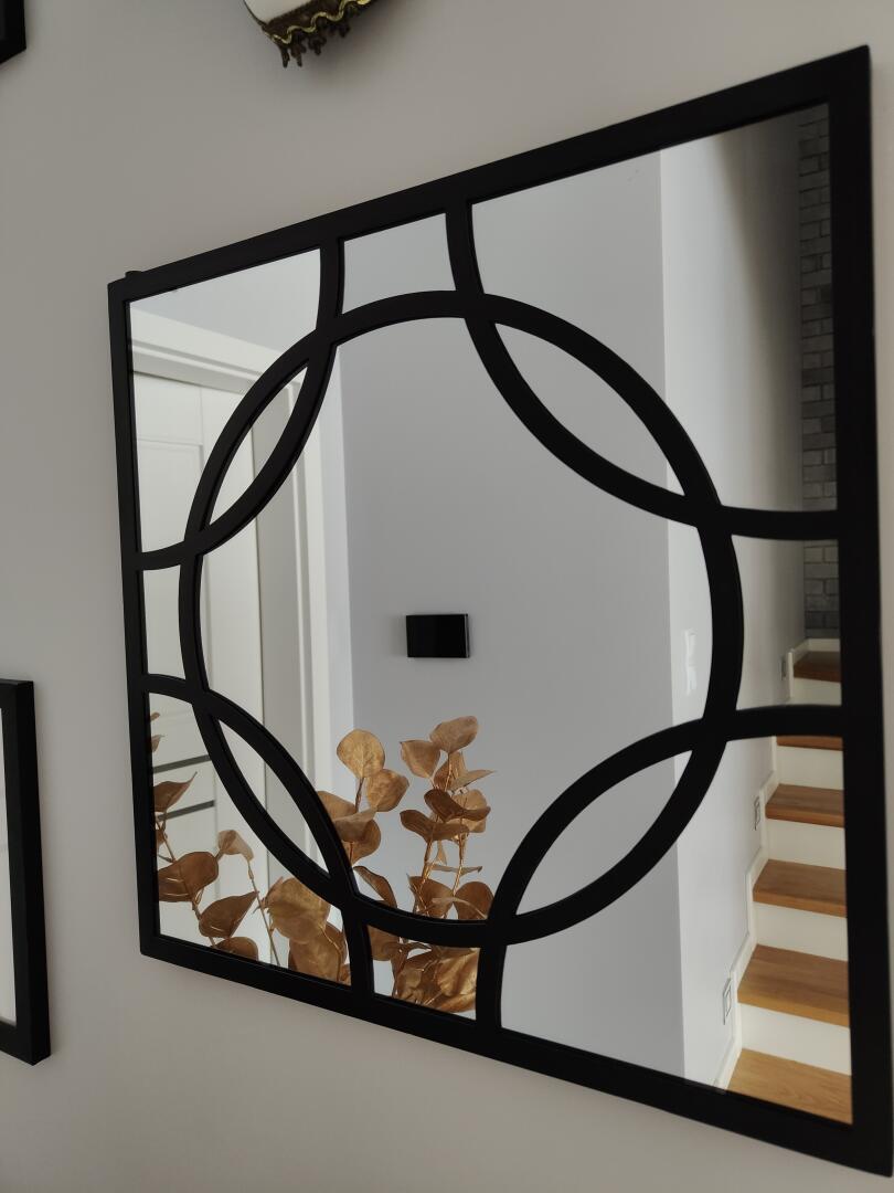 Kwadratowe lustro, 45x45 w metalowej ramie.